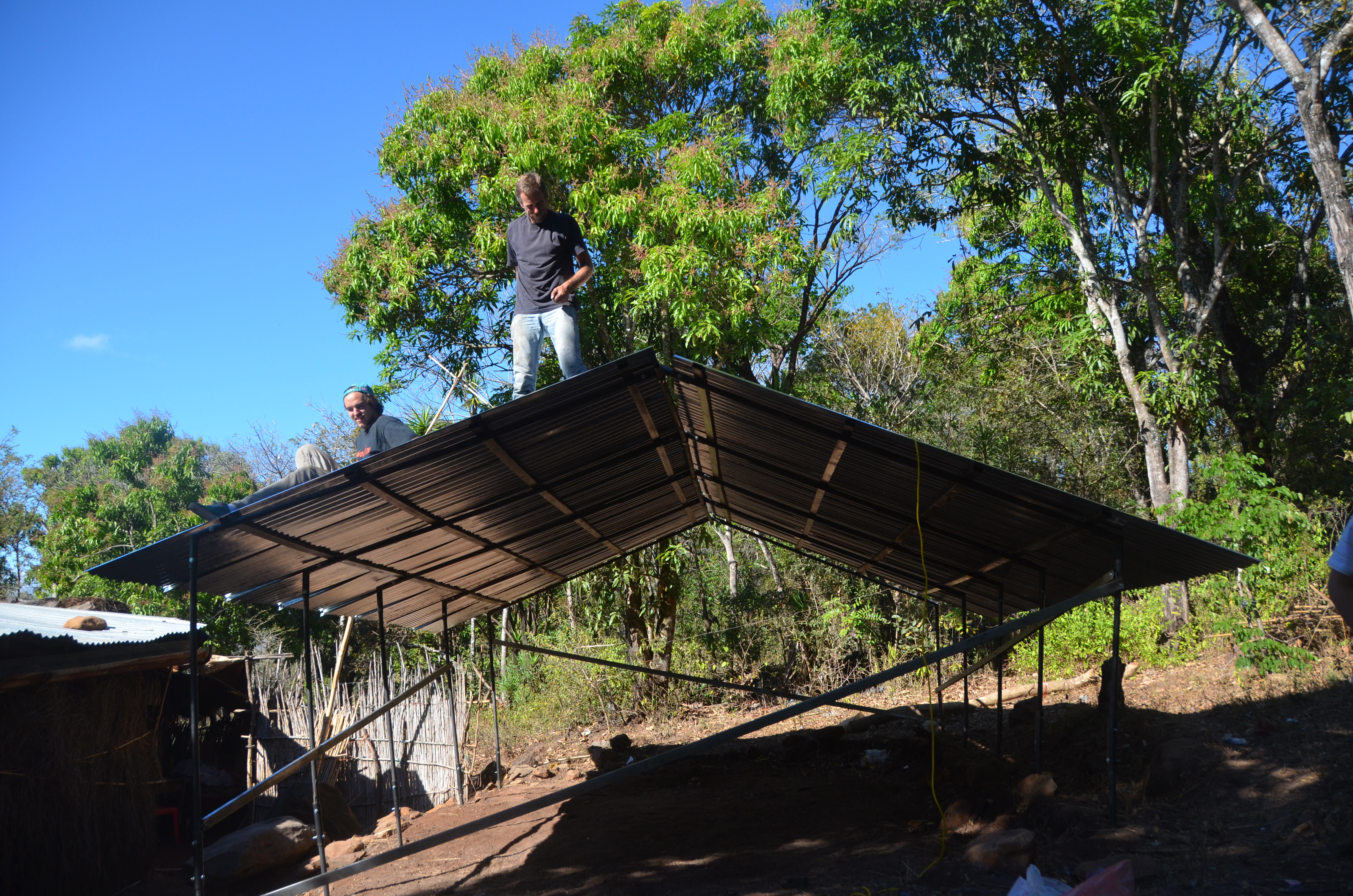 Now, about this roof structure… exciting times… one night, Geoff, Jamie, John and Zack (Jamie & Laurie and John & Helena were our most recent volunteers) sat outside at our plastic dining table and came up with a plan. An amazing plan of a pre-fab roof that can be put up in a day. There was a woman, Miriam from last year that we had promised to help when we returned this year because last year we were out of time and money…. This lovely woman and her family were our first trial of this roof structure. It went amazing! Geoff, Jamie, John and Zack, Luke and Gabe put it up in 1 day with some finishing touches the next day. It was all pre-fab and welded in the courtyard of our home by some Guatemalans and its awesome. Its not a house but its a structure that will keep them dry and warm in the rainy season. One can attach walls of rock, adobe mud, bamboo, metal lamina etc etc.. virtually anything! Our plan is to teach Manuel how to weld and employ him to make them for us for use in the mountain villages.